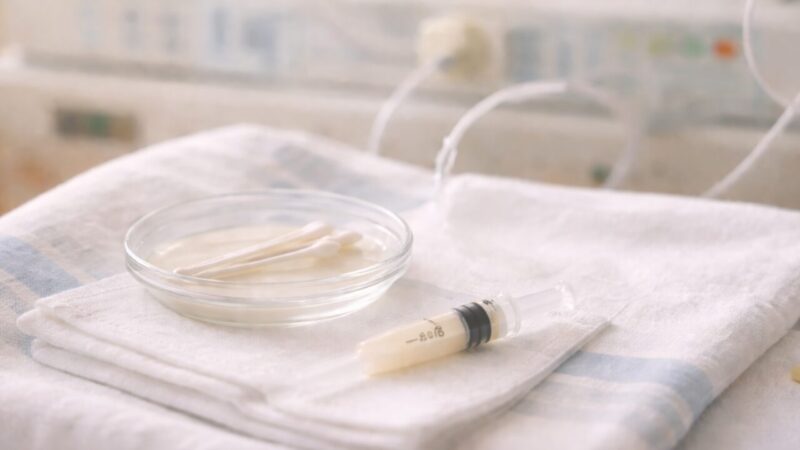 母乳は、胃に管を入れて、注射器のようなもので